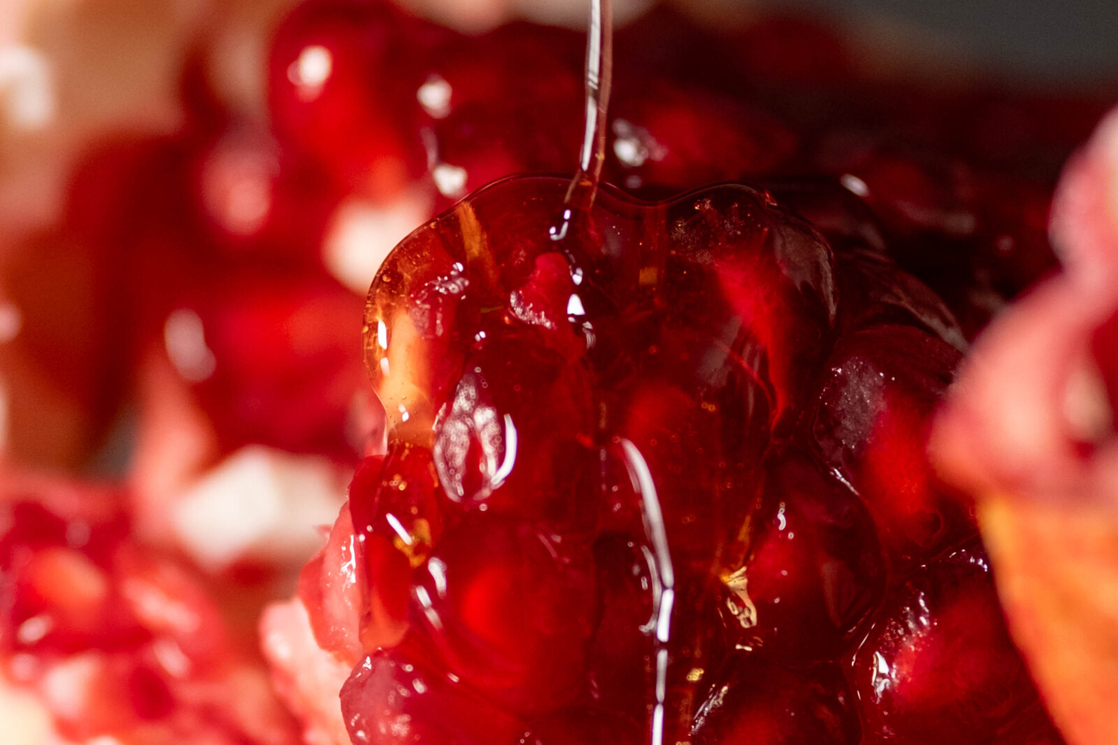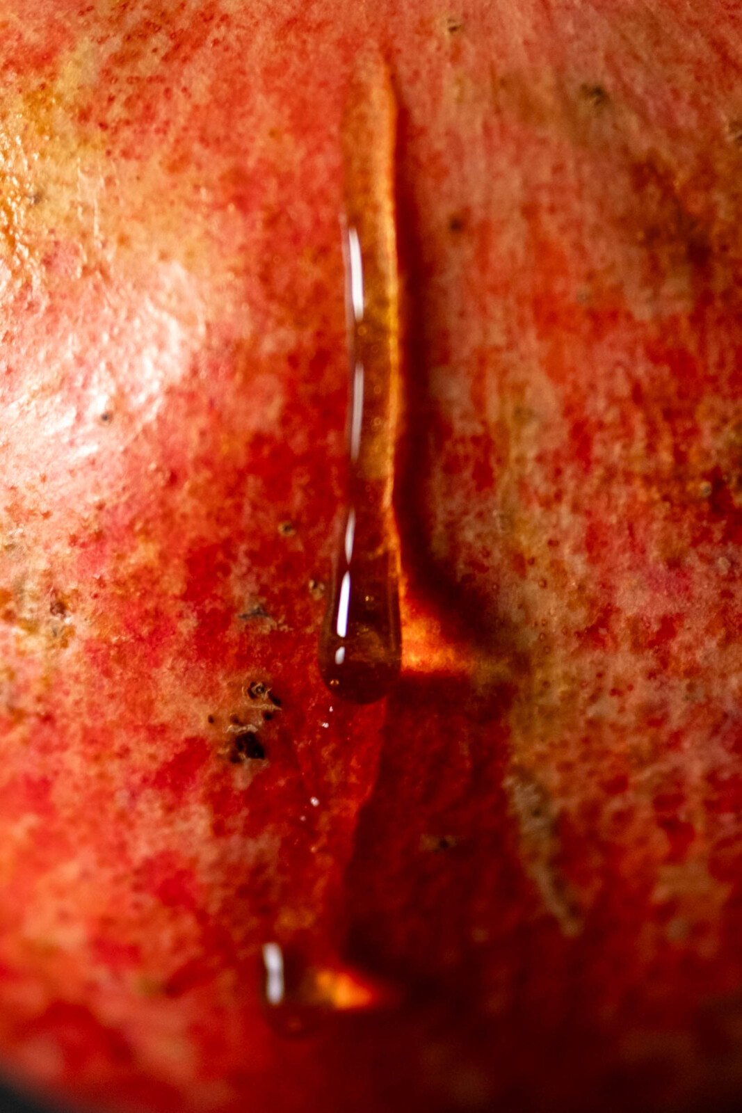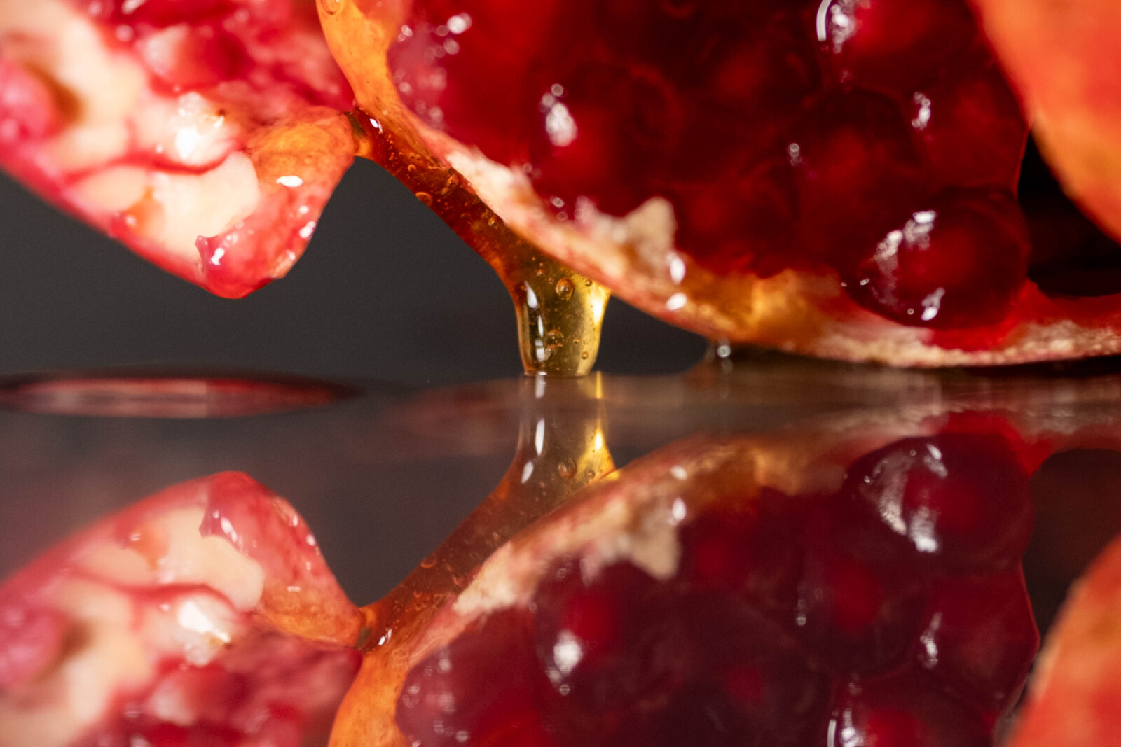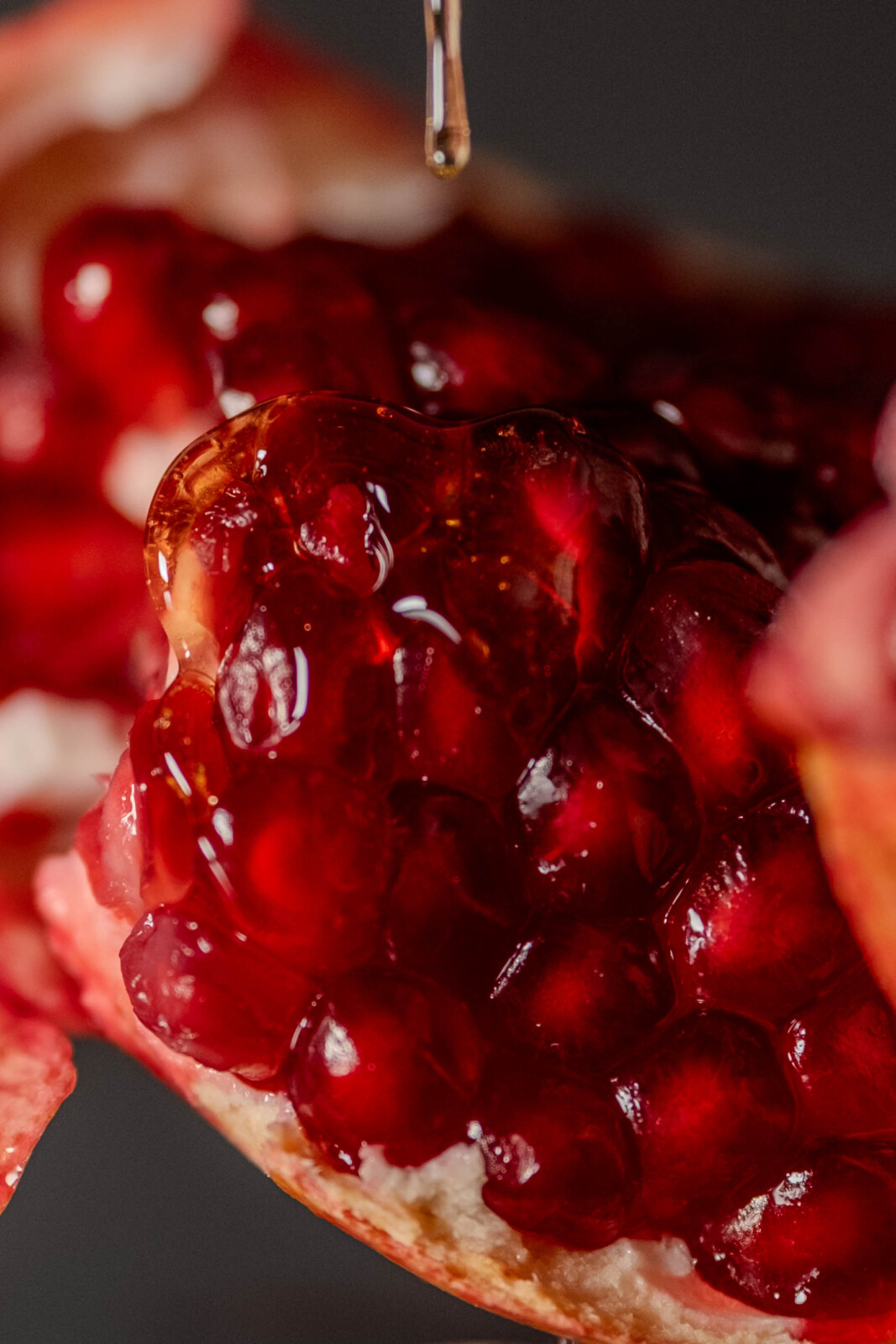 This photo series explores the slow destruction of love and lust through the transformation of a pomegranate. What begins as an intact, body-like form is gradually exposed, saturated, and dismantled. Honey enters as an external presence, sweet, seductive, and invasive upon first touch, then overwhelming the fruit. As the structure breaks down, the pomegranate’s own juice emerges like tears, blurring the line between desire and harm. In the end, the body disappears entirely. What remains is only honey. Smooth, reflective, and indifferent. The series examines intimacy as a process of consumption. Sweetness survives, but the body does not.