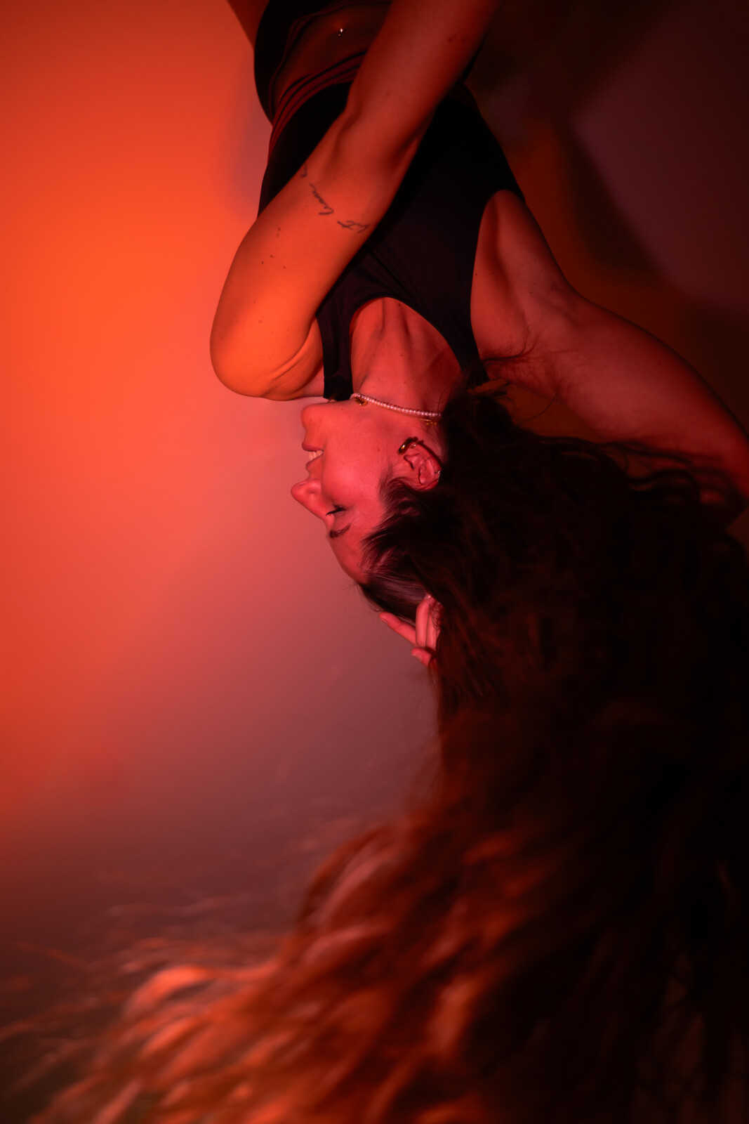 Die fotografische Arbeit zeigt Poledance zeigt als Zusammenarbeit von Kraft, Sinnlichkeit und Verletzlichkeit. Durch die Kombination von Frosch- und Vogelperspektive wird sichtbar, wie unterschiedlich der Körper von außen wahrgenommen wird und wie er sich innerlich anfühlen kann. Anschnitt, Spiegelungen und Licht wurden bewusst eingesetzt, um den Körper zu teilen und gängige Vorstellungen von Kontrolle und Perfektion zu hinterfragen. Einzelne Aufnahmen mit längerer Belichtungszeit erzeugen Bewegungsunschärfe und betonen Bewegung im Sinne von Veränderung. Die Bildserie lädt ein, Körperwahrnehmung nicht eindeutig, sondern vielschichtig zu betrachten.