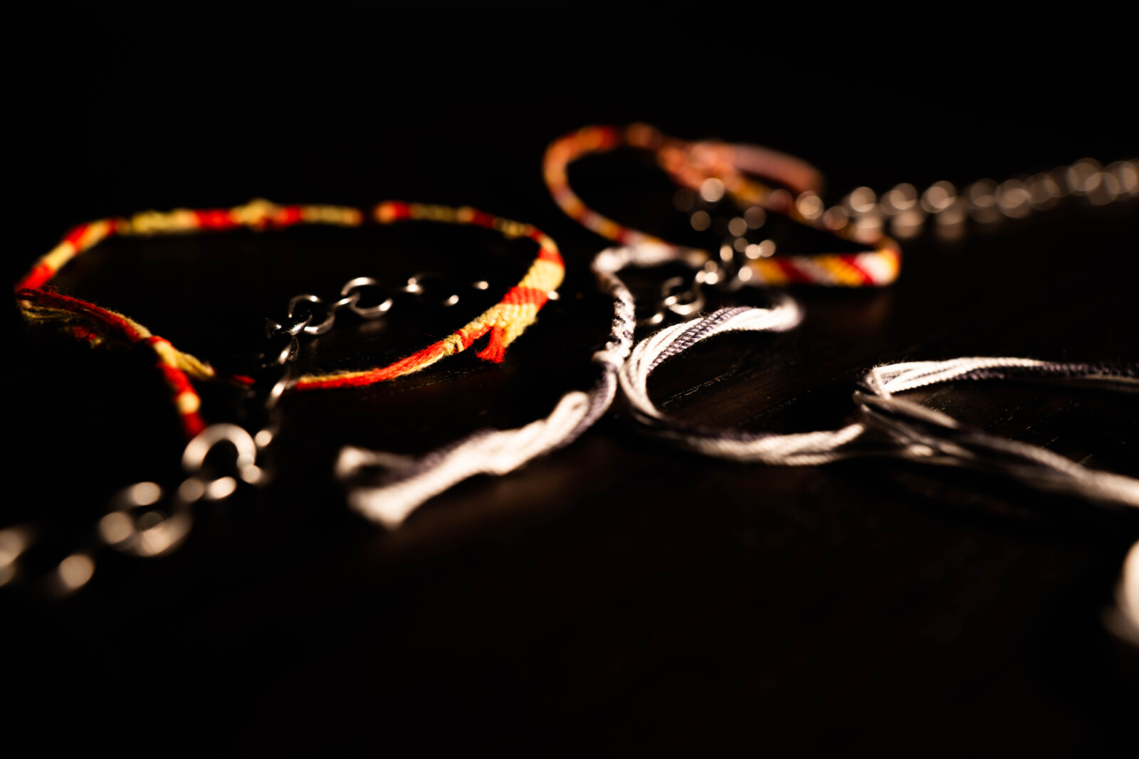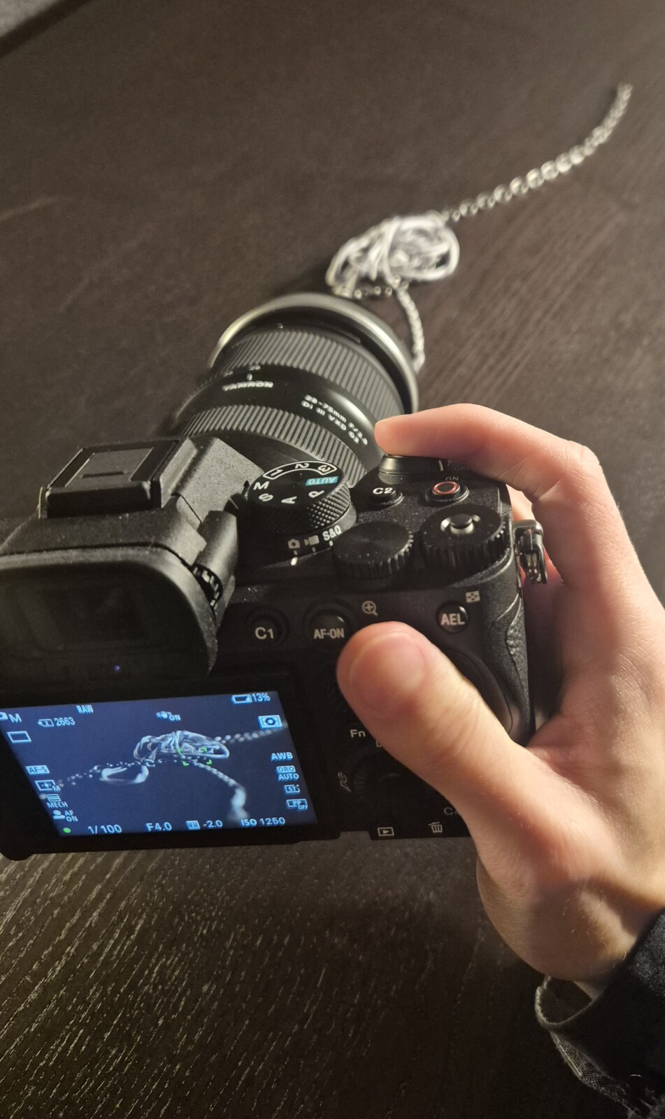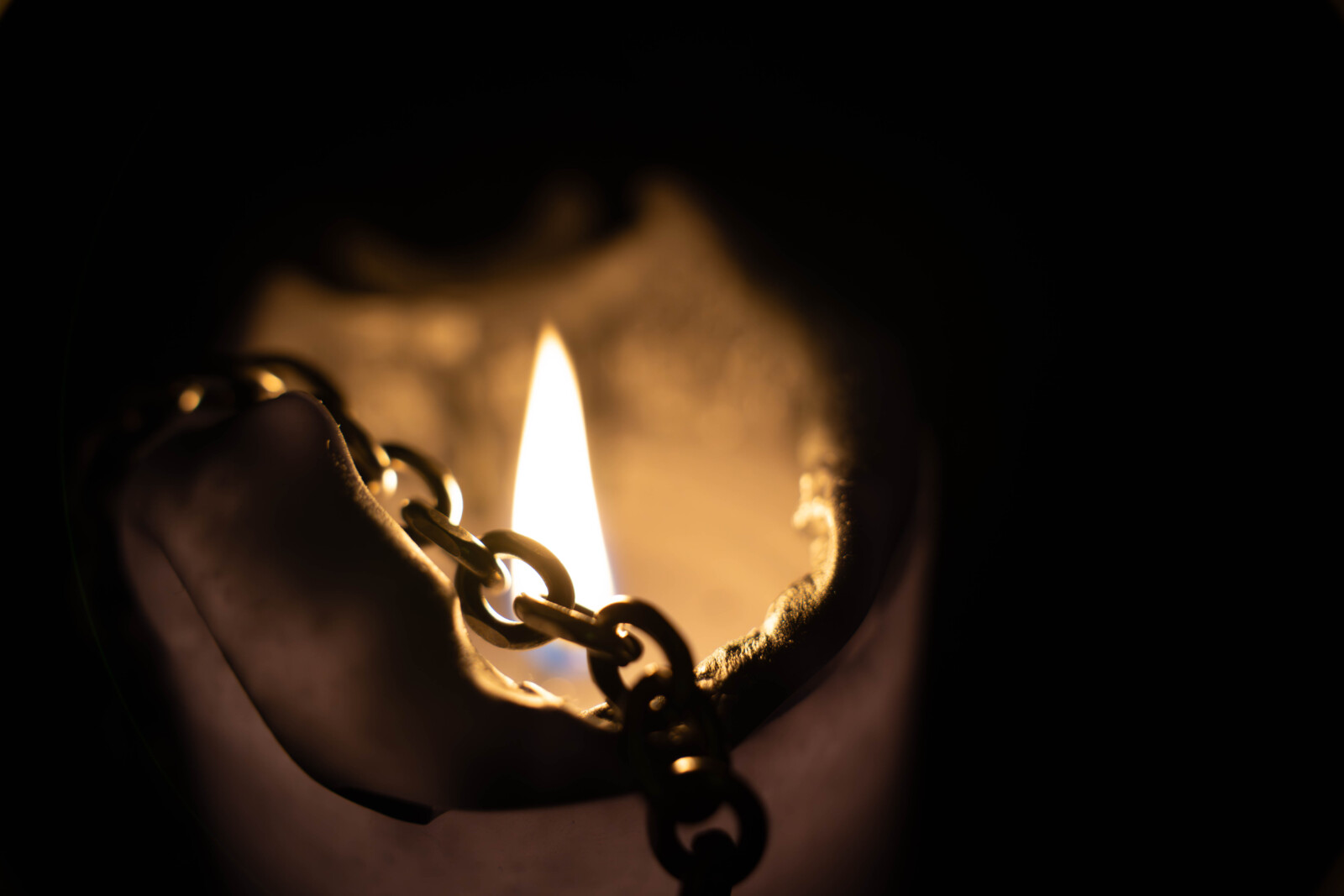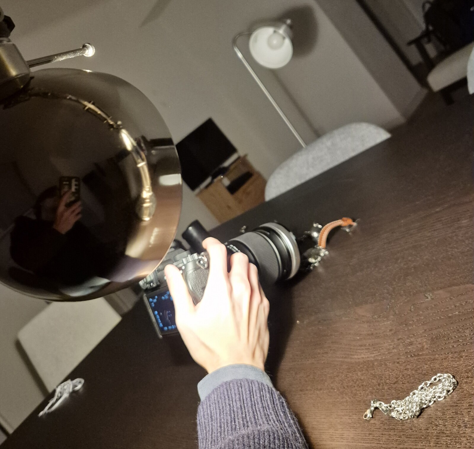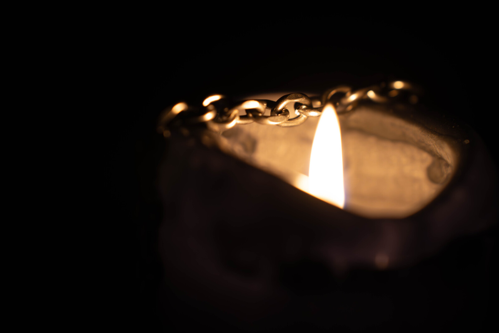 This is a series of Photographs, which declares the story of a chain, where its path started and where it followed, how it intertwines, what shaped it and made it wind to the place it ended up in the end. The objects it passes could be interpreted as symbolic – a watch, milk teeth, playing console memory cards, friendship bracelets, candles and a second chain. With a blooming Fantasy, a story unfolds: Of the beginning of a journey, growing up, playing games, using technology, making friends, having a fated encounter, all while time is running towards the end, with the flame of life burning down slowly. The photos are rather dark with little light spent by candlelight or the reflections of said objects, but mostly of the chain itself. This results in a moody, grungy atmosphere, reflecting the impending last ring in the chain.